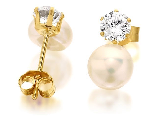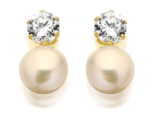 9ct Gold Cubic Zirconia And Freshwater Cultured Pearl Stud Earrings - 6mm - G2778