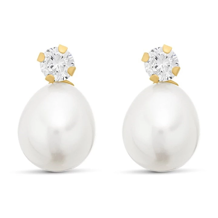 9ct Gold Cubic Zirconia And Freshwater Pearl Stud Or Drop Earrings - G3281
