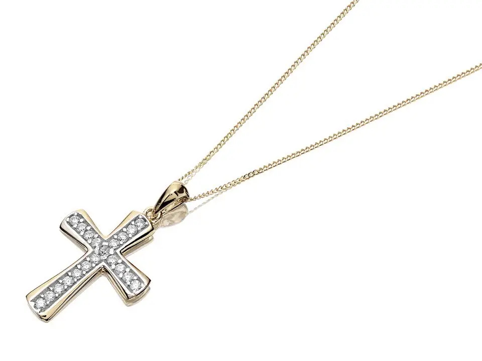 9ct Gold Cubic Zirconia Cross And Chain - R6608