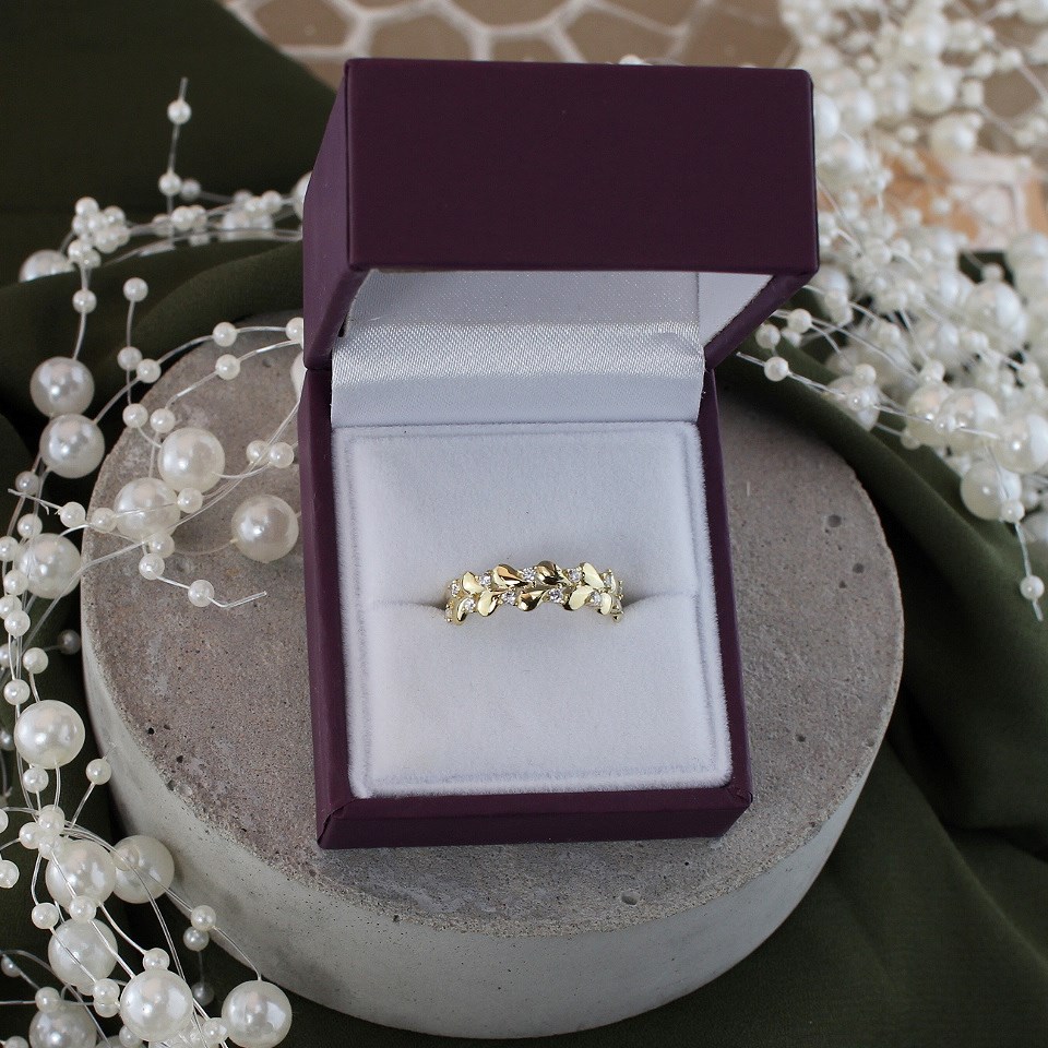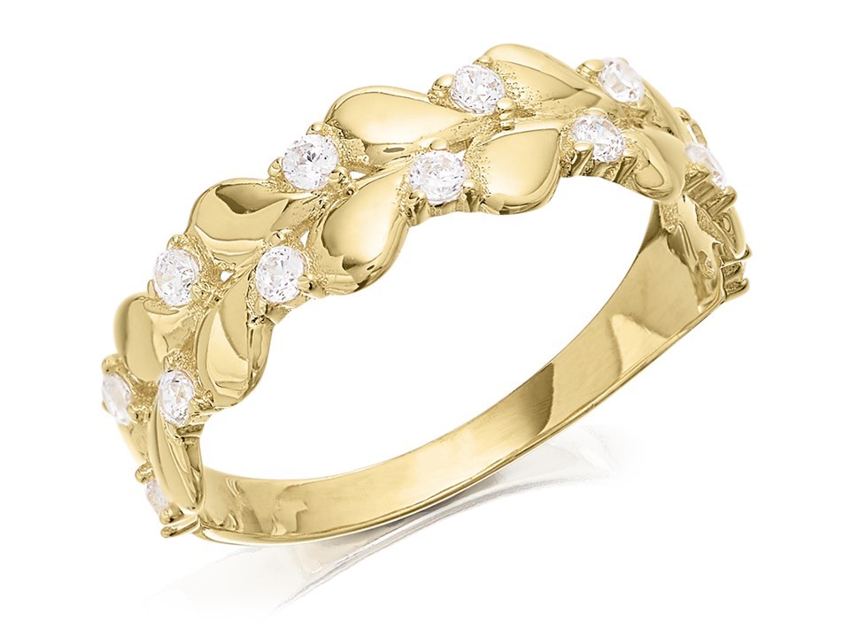 9ct Gold Cubic Zirconia Floral Band Ring - R6561