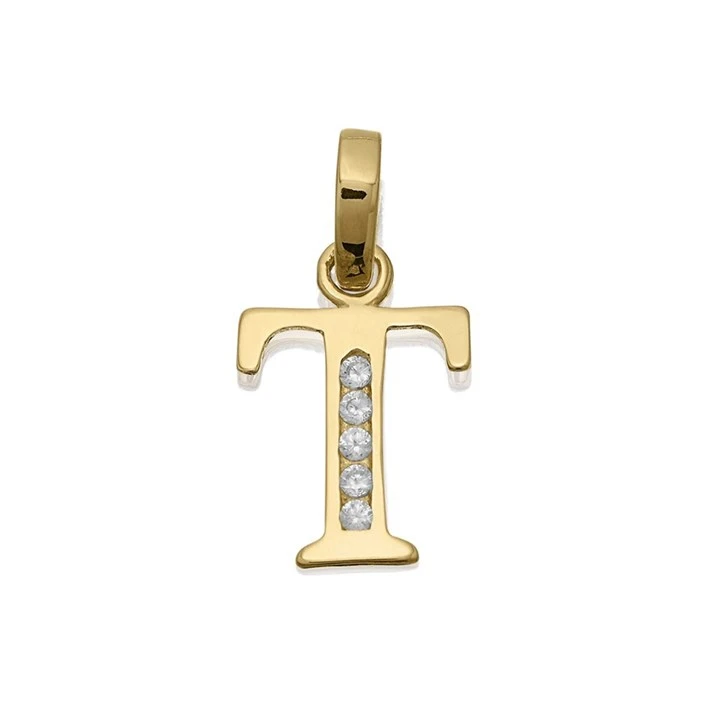 9ct Gold Cubic Zirconia Initial T - R5120
