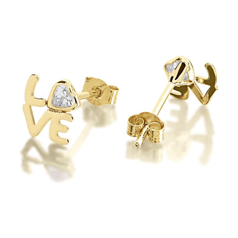 9ct Gold Cubic Zirconia Love Stud Earrings - 6mm - G27138
