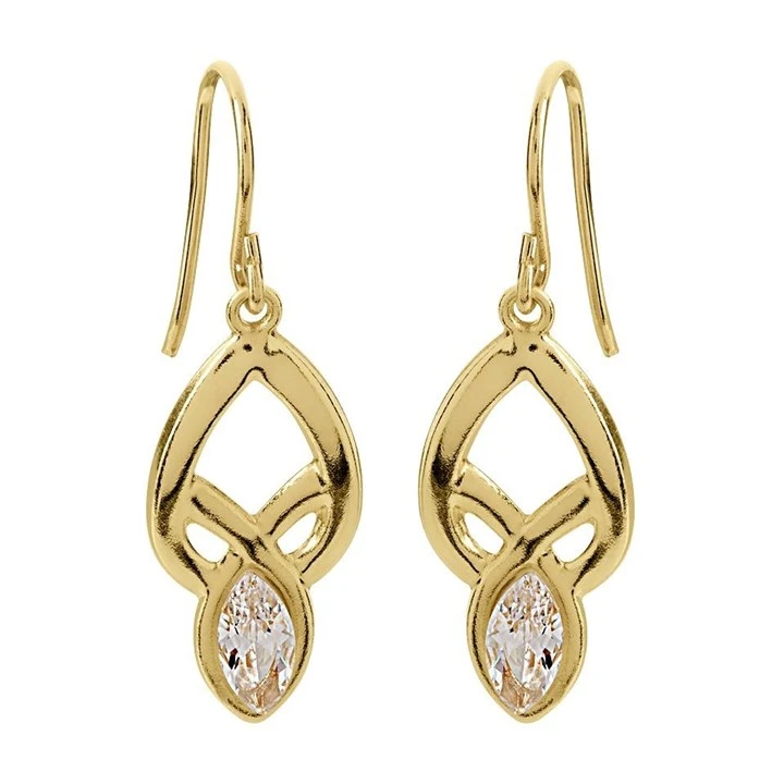 9ct Gold Cubic Zirconia Marquise Hook Wire Earrings - 27mm drop - G3296