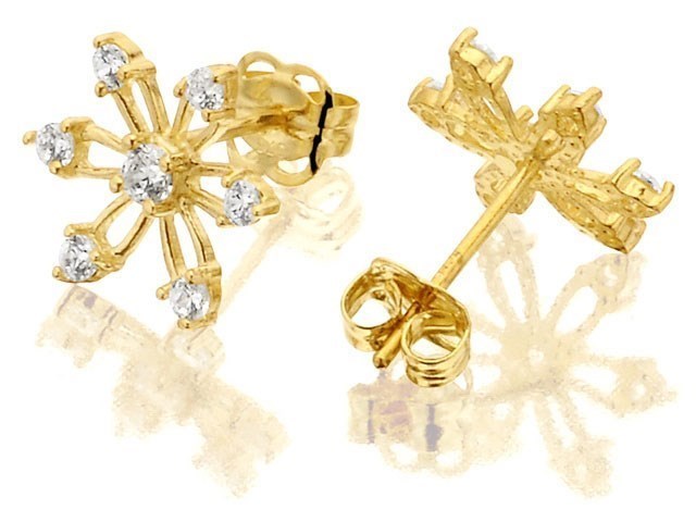 9ct Gold Cubic Zirconia Snowflake Stud Earrings - 10mm - G2741