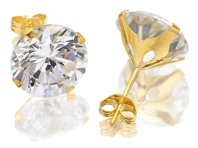 9ct Gold Cubic Zirconia Solitaire Stud Earrings - 10mm - G2793
