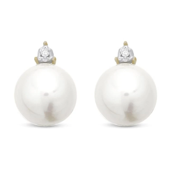 9ct Gold Cultured Pearl And Diamond Stud Earrings - D54119