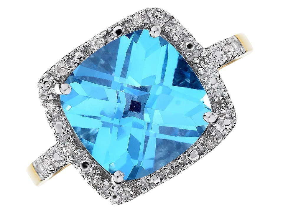 9ct Gold Cushion Blue Topaz And Diamond Ring - 7pts - d8416