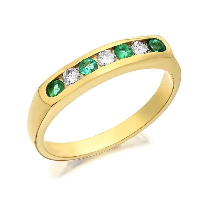 9ct Gold Diamond And Emerald Half Eternity Ring - 20pts - D8264