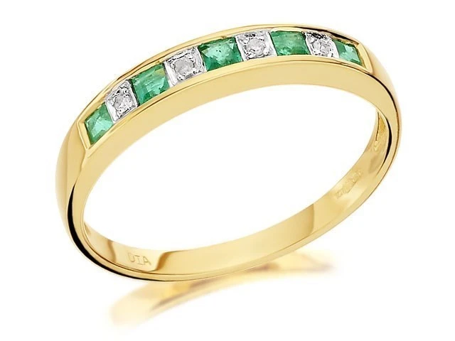 9ct Gold Diamond And Emerald Half Eternity Ring - D8221