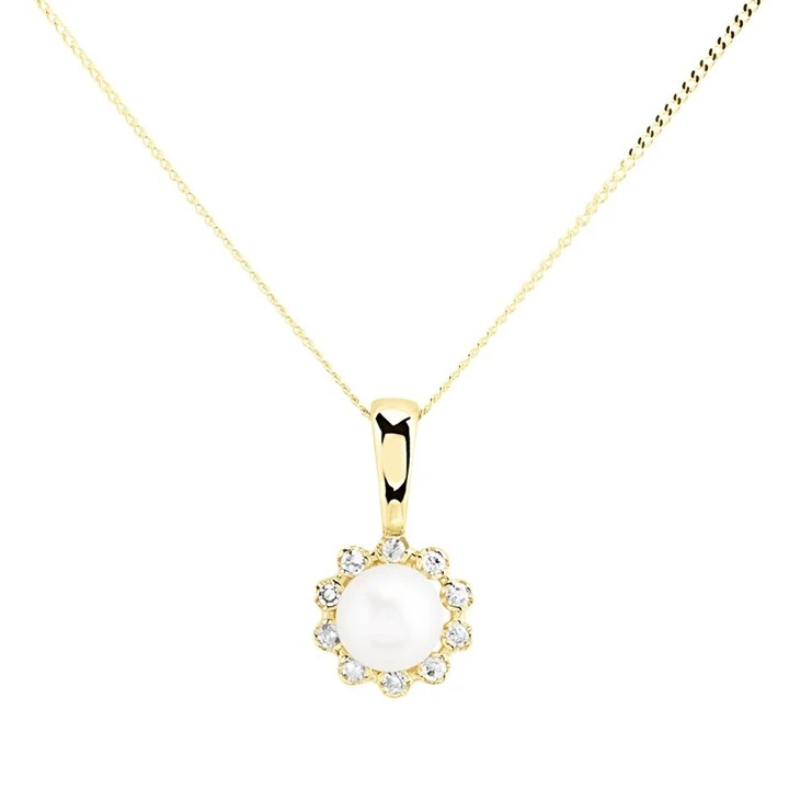 9ct Gold Diamond And Freshwater Pearl Necklace - 5pts - R7778