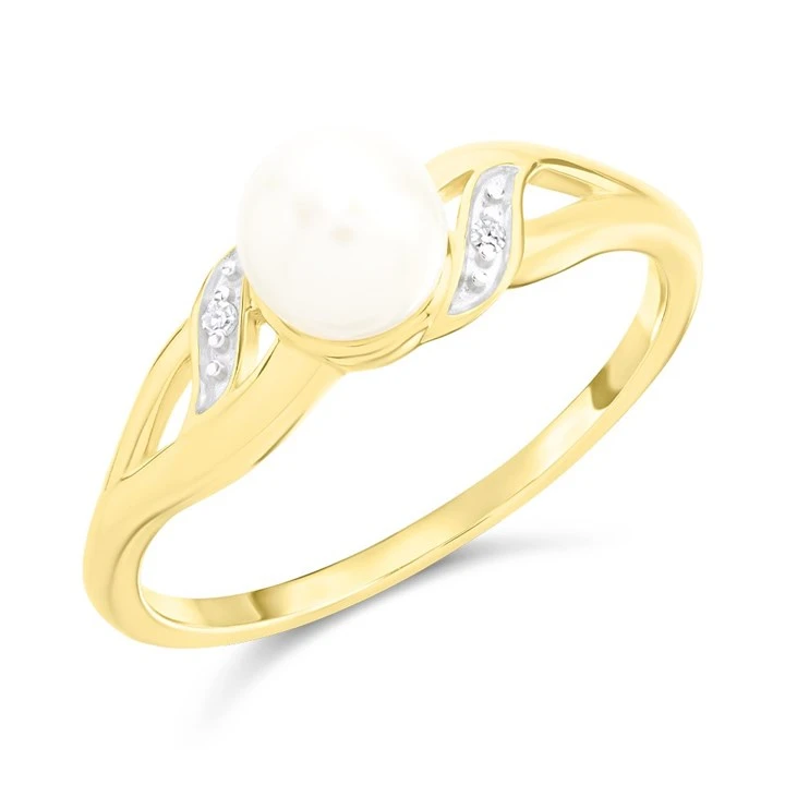 9ct Gold Diamond And Freshwater Pearl Ring - R0984