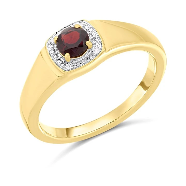 9ct Gold Diamond And Garnet Signet Ring- Size U - Z51193