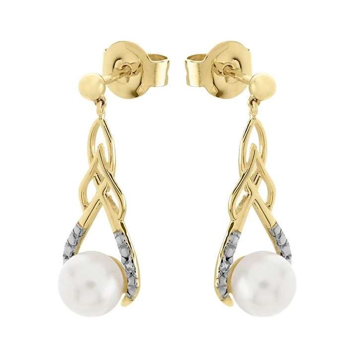 9ct Gold Diamond And Pearl Drop Earrings - 21mm drop - G1834