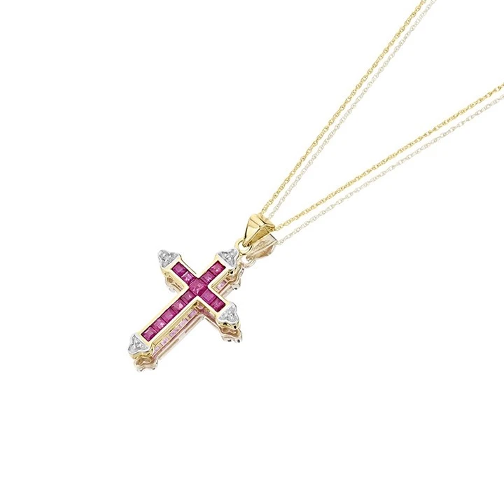 9ct Gold Diamond And Ruby Cross And Chain - D5711