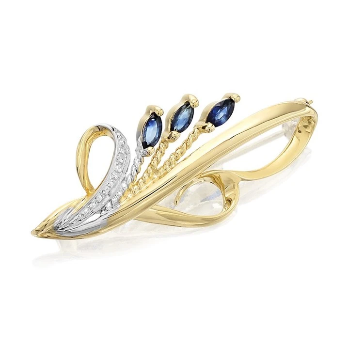 9ct Gold Diamond And Sapphire Brooch - D9595