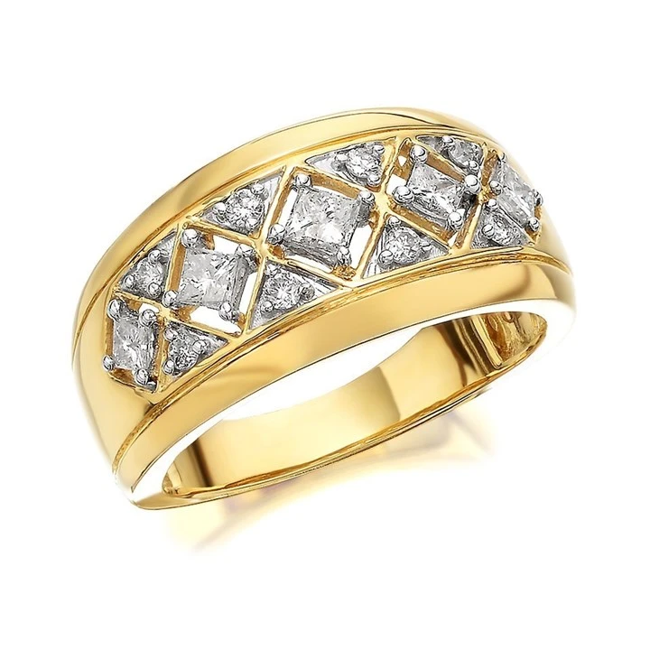 Similar to dress rings, wide band rings are usually worn for special occasions and offer an alternative to the slimmer, single row eternity ring. As band rings are often wider than the average engagement, eternity or dress ring, we recommend selecting at least one ring size larger than usual to accommodate the wide setting.