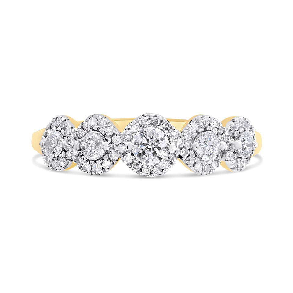 9ct Gold Diamond Cluster Band Ring - 1/2ct - d5816