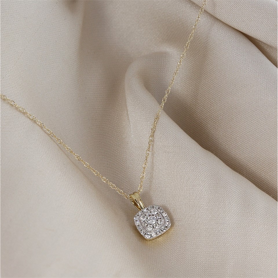 9ct Gold Diamond Cluster Necklace - D95211