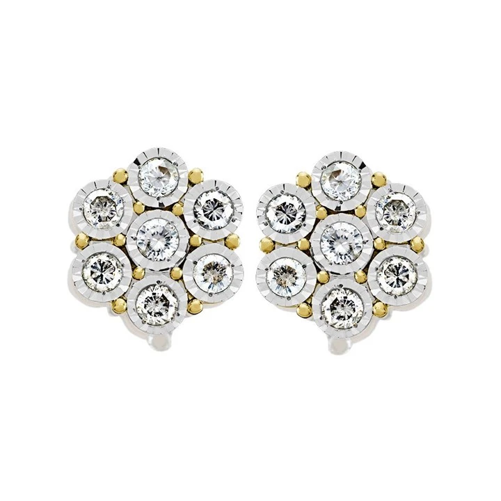 9ct Gold Diamond Cluster Stud Earrings - 1.2ct per pair - D54125