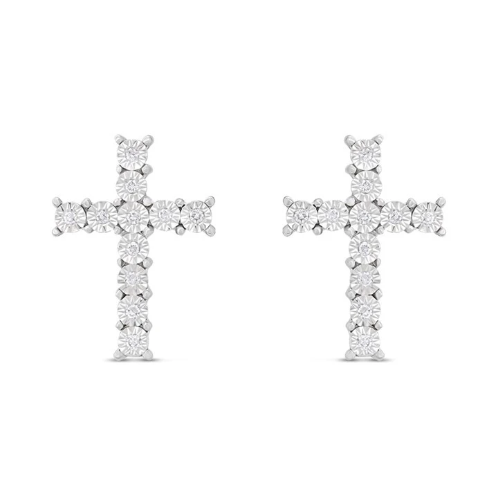 9ct Gold Diamond Cross Stud Earrings - D9689