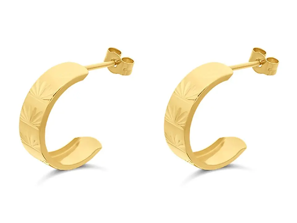 9ct Gold Diamond Cut Half Hoop Earrings - 14mm - G2604