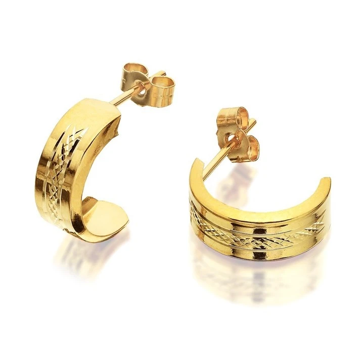 9ct Gold Diamond Cut Half Hoop Earrings - G2523