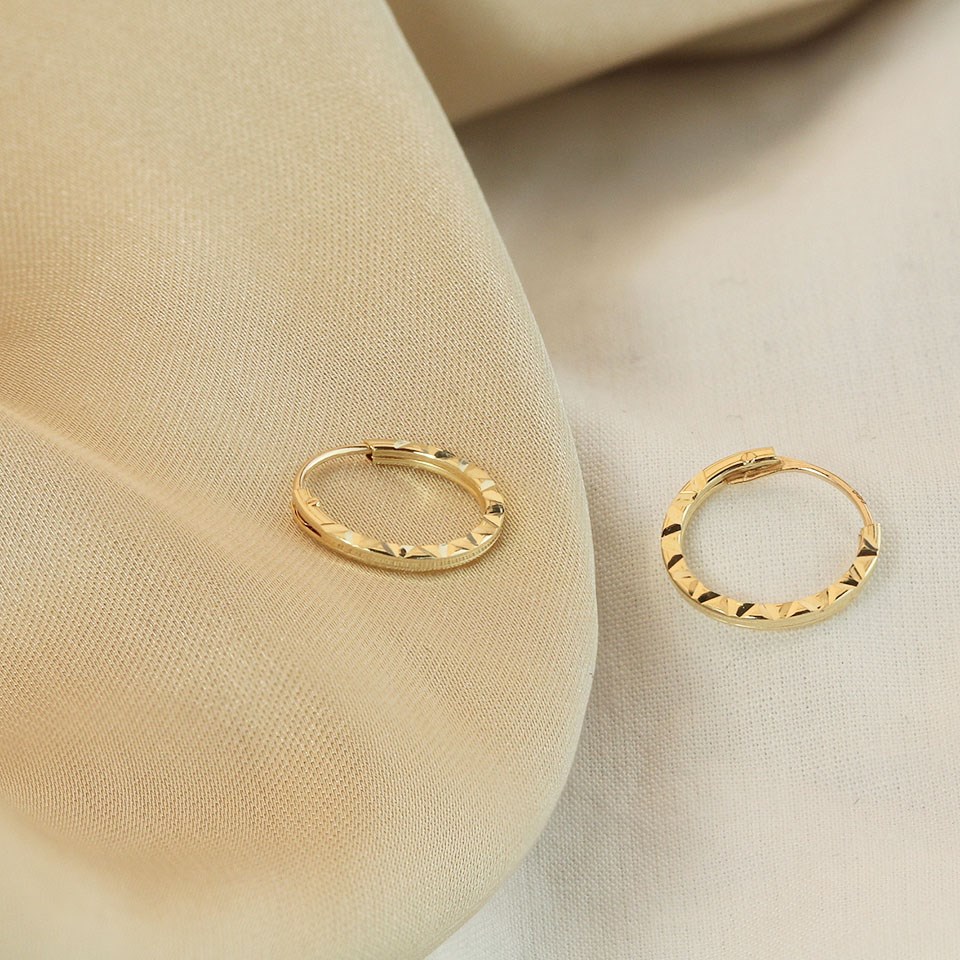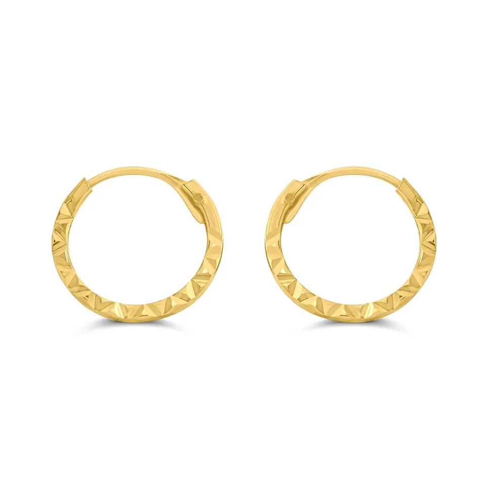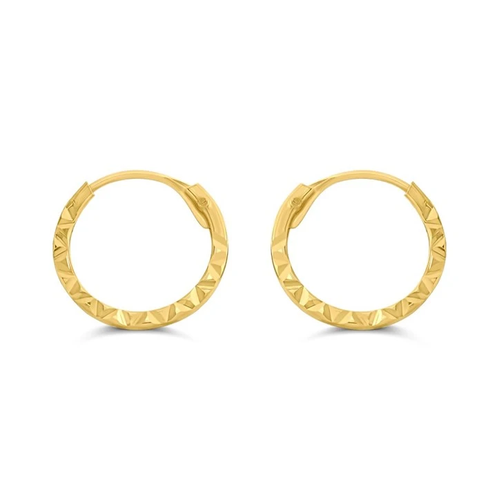 9ct Gold Diamond Cut Hoop Earrings - 10mm - G2487