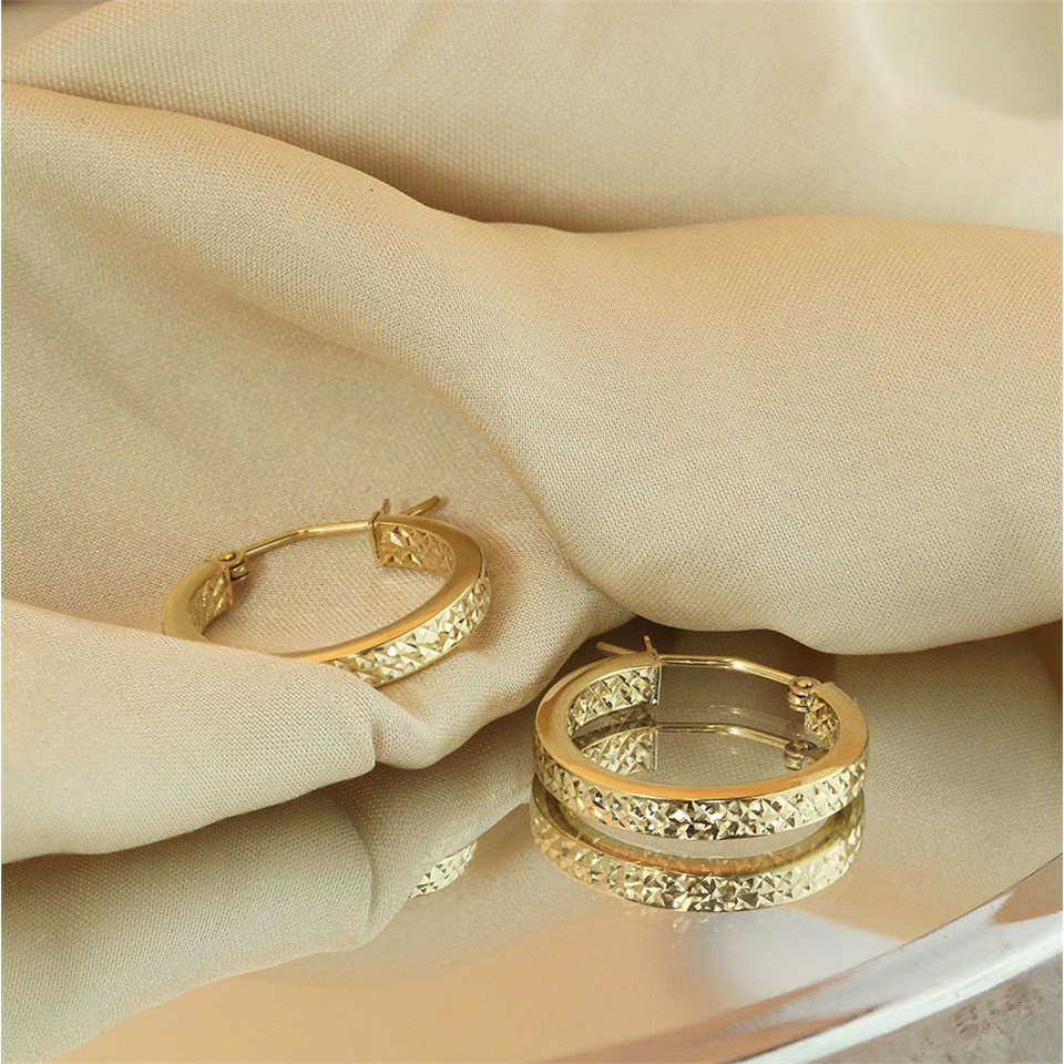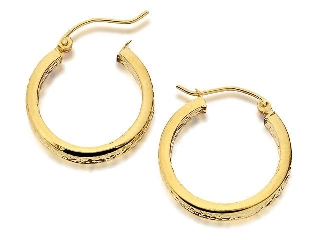 9ct Gold Diamond Cut Square Edged Hoop Earrings - 20mm - G2220
