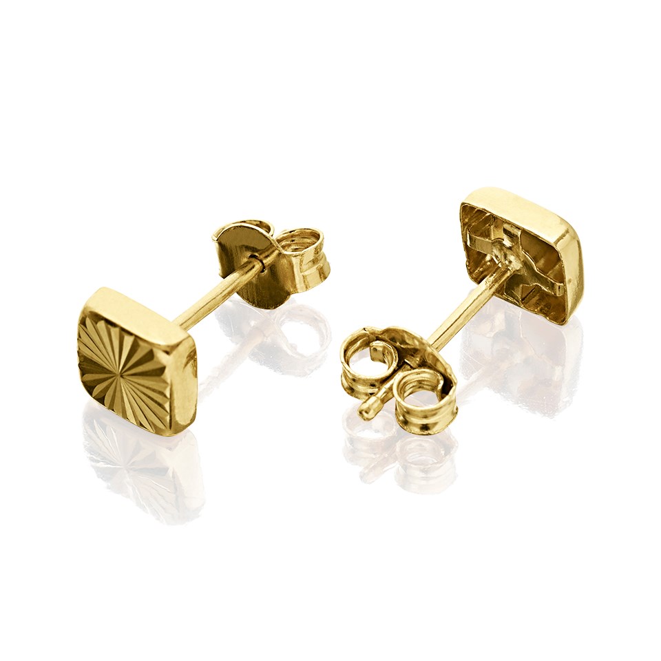 9ct Gold Diamond Cut Square Stud Earrings - 5mm - G0179