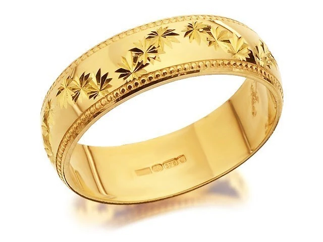 9ct Gold Diamond Cut Stars Garland Wedding Ring - 5mm - R4357