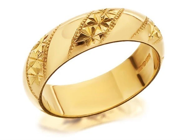 9ct Gold Diamond Cut Stripe Wedding Ring - 5mm - Size G Only - Z50405