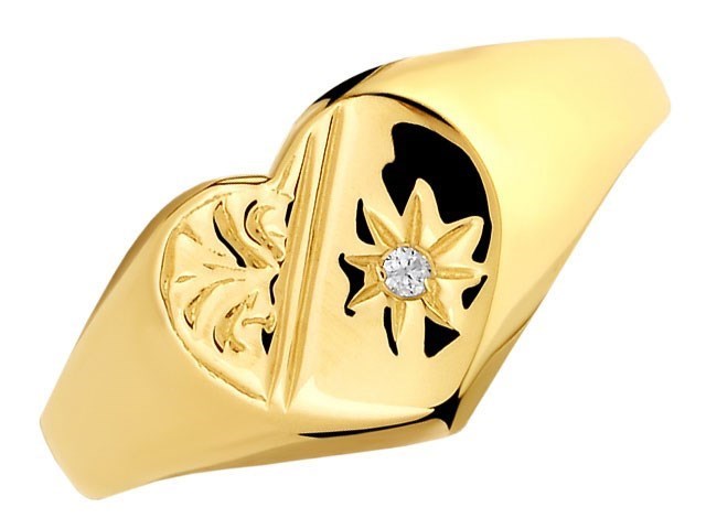 9ct Gold Diamond Engraved Heart Signet Ring - R2514