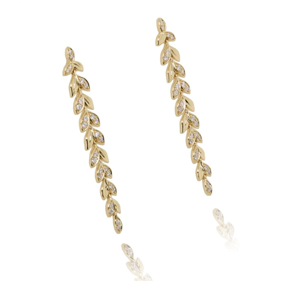 9ct Gold Diamond Leaf Drop Earrings - 1/4ct per pair - D87031