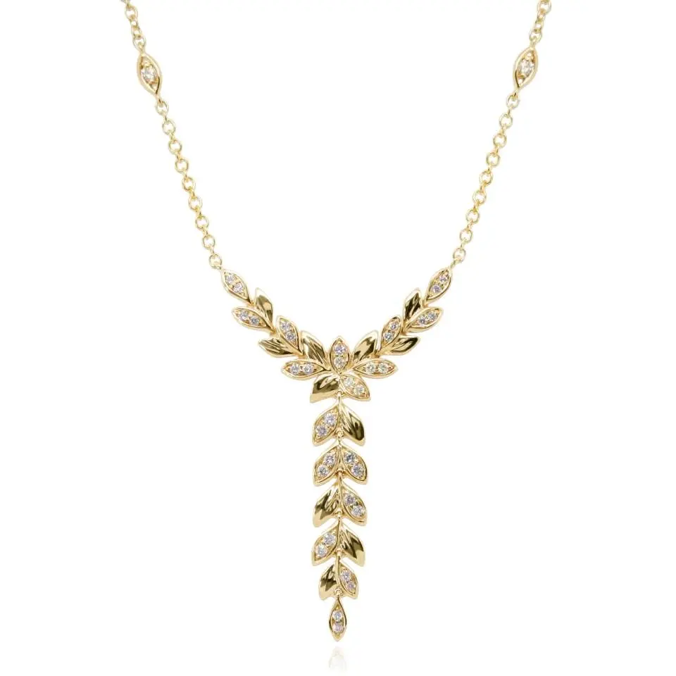9ct Gold Diamond Leaf Lariat Necklace - 19pts - D87016