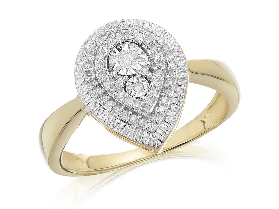 9ct Gold Diamond Pear Cluster Ring - 19pts - D9258