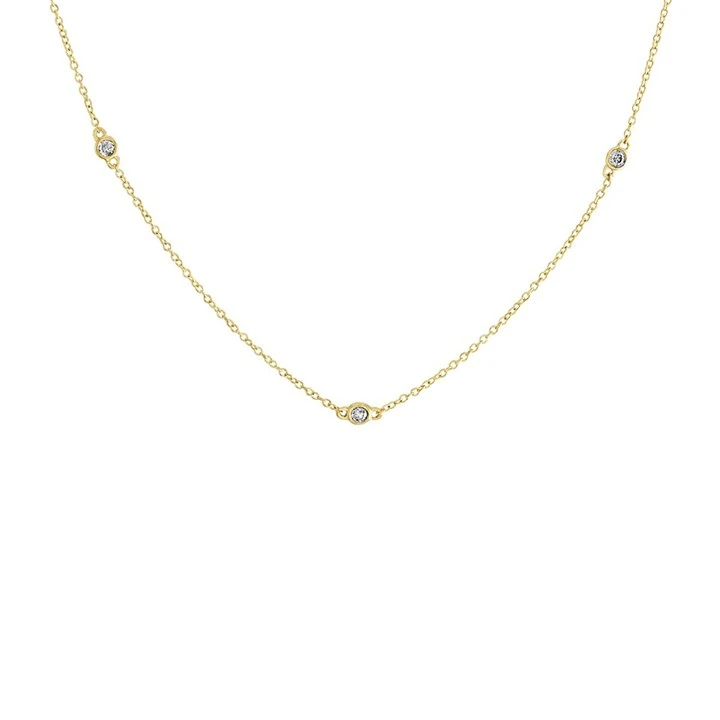 9ct Gold Diamond Station Necklace - 20pts - D56126