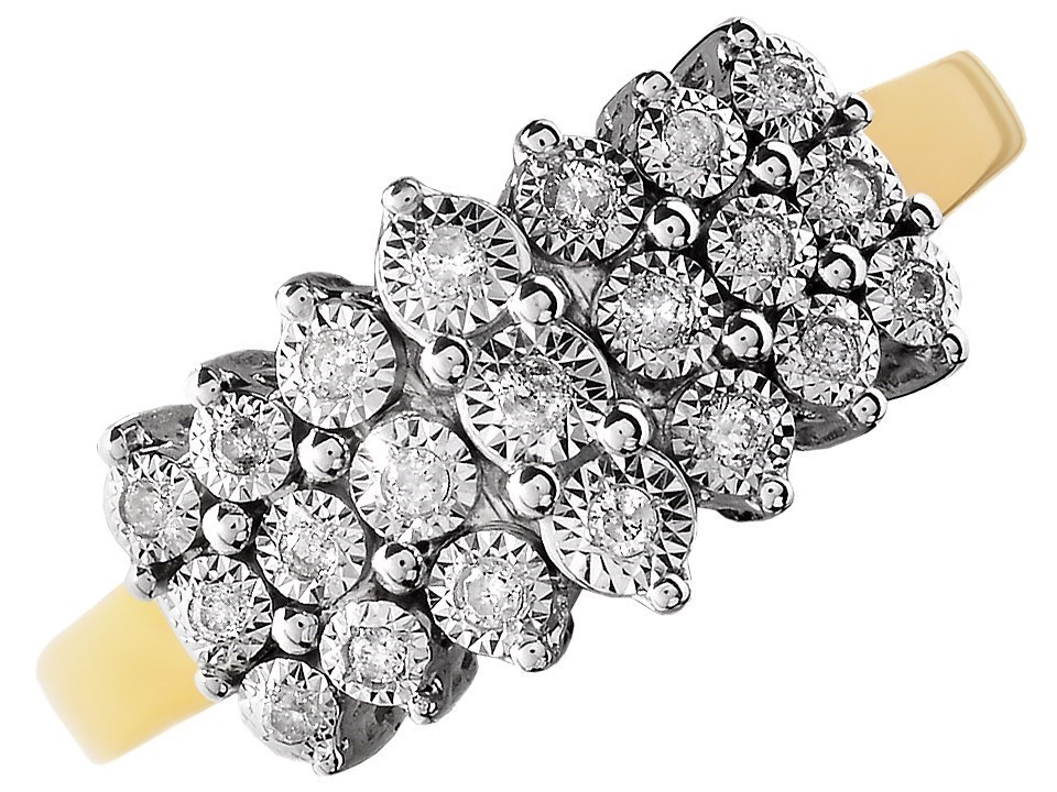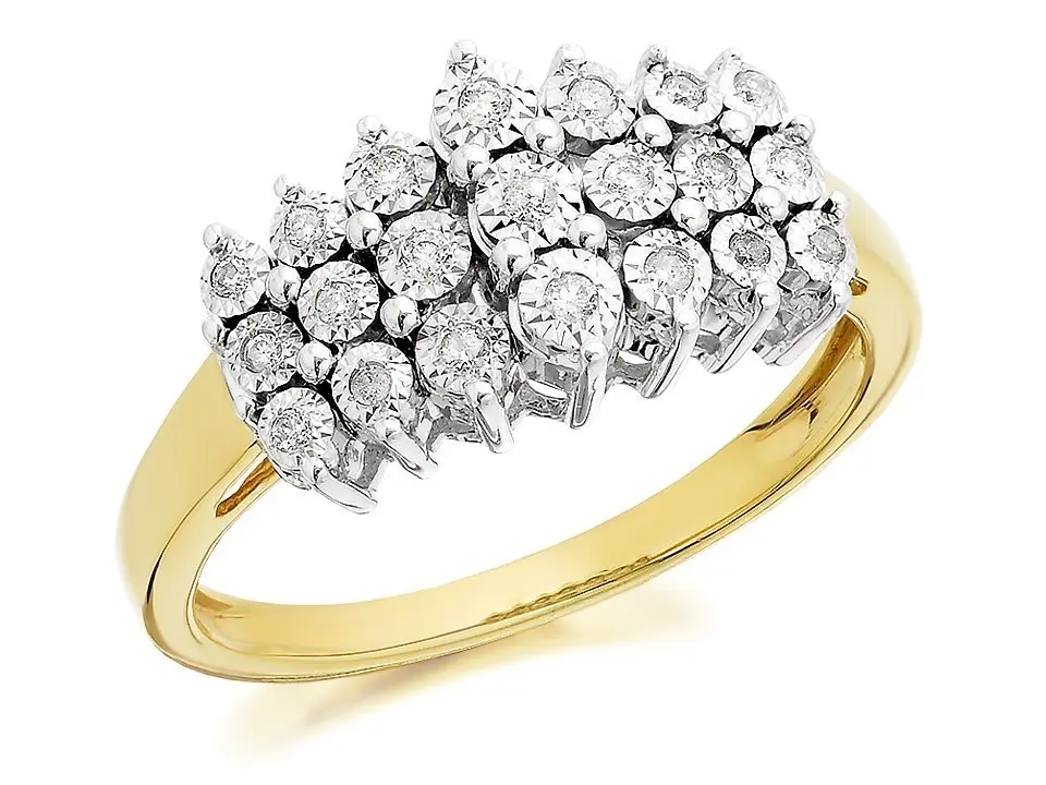 9ct Gold Diamond Three Row Band Ring - 10pts - D9211