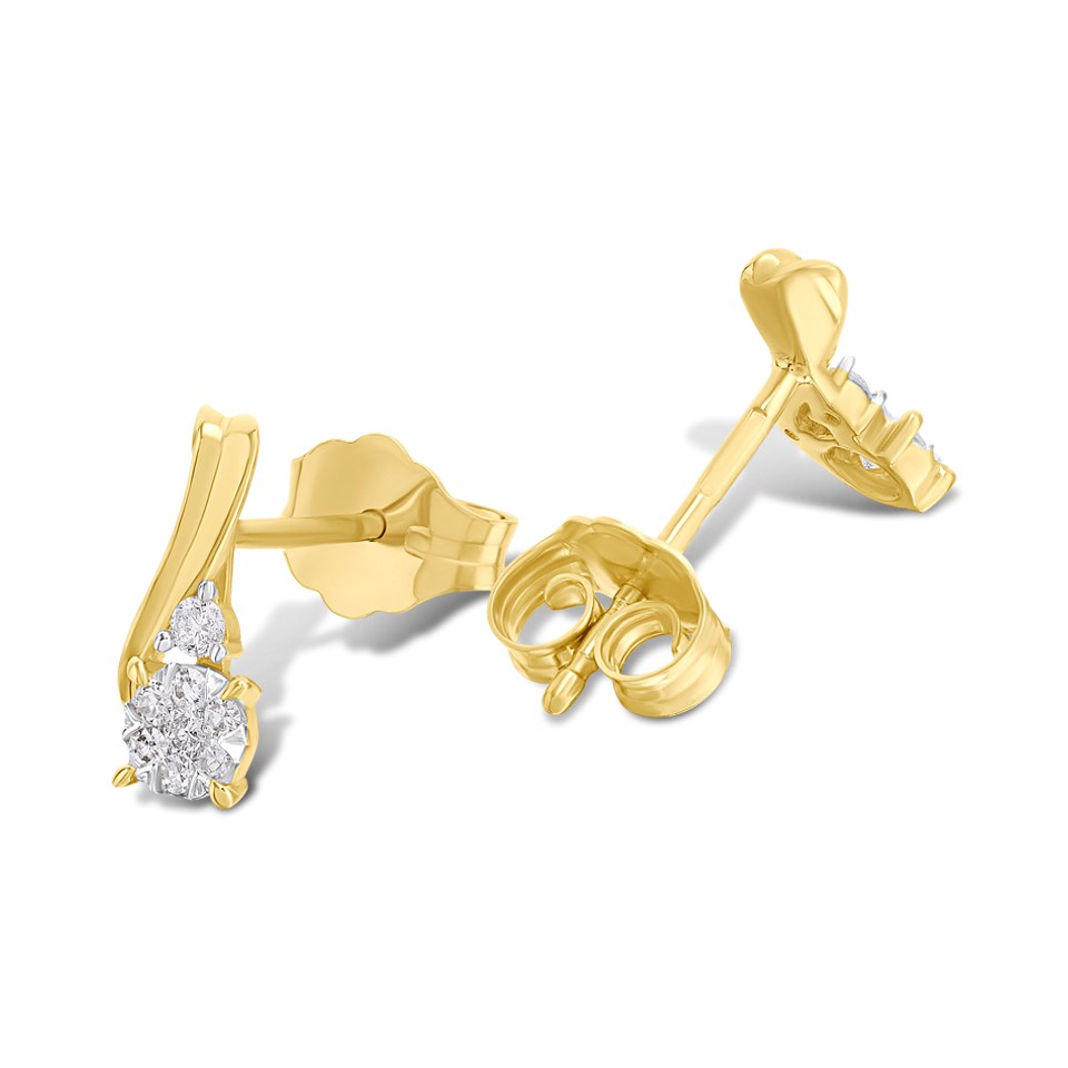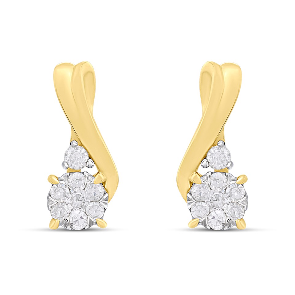 9ct Gold Diamond-Set Swirl Cluster Stud Earrings - D94176