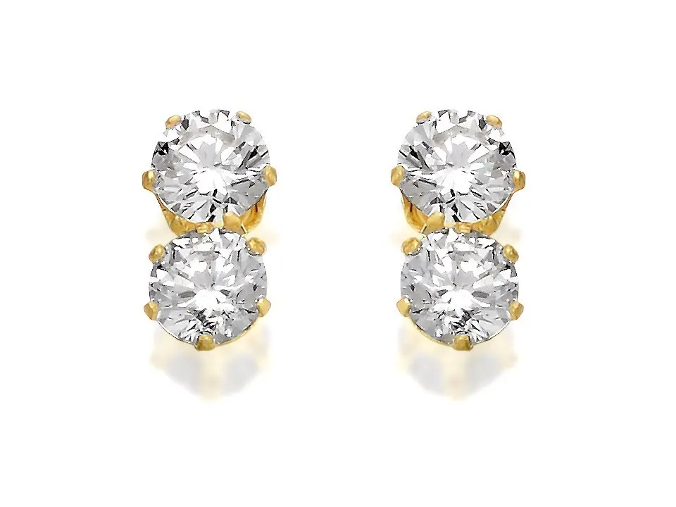 9ct Gold Double Cubic Zirconia Stud Earrings - 8mm - G3233