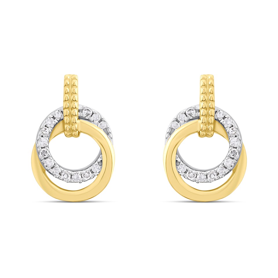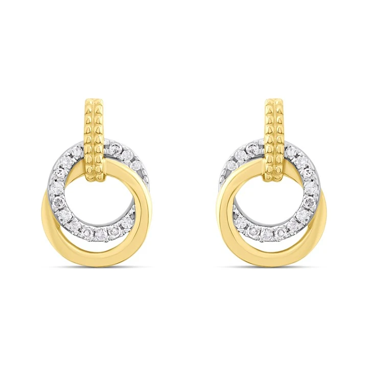9ct Gold Double Hoop Diamond-Set Earrings - D94166