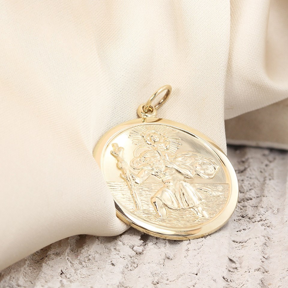 9ct Gold Double Sided St. Christopher Medallion - 25mm - G5374