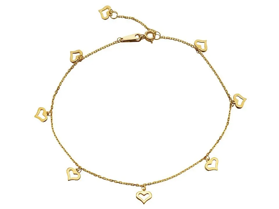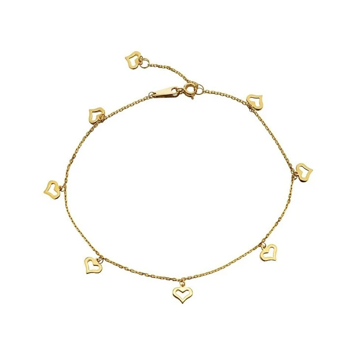 9ct Gold Eight Hearts Anklet - 10in - G7914