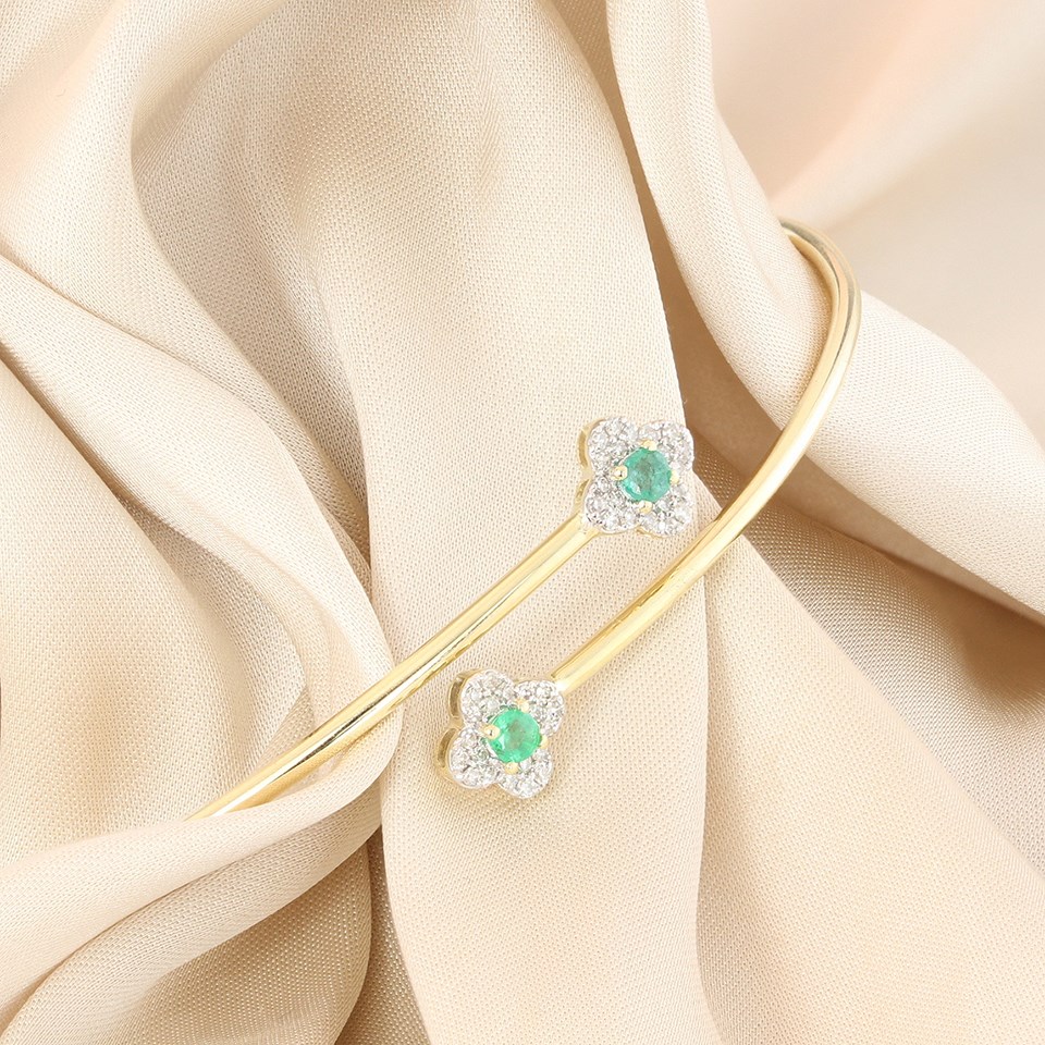9ct Gold Emerald And Diamond Cross-Over Torc Bangle - D95184
