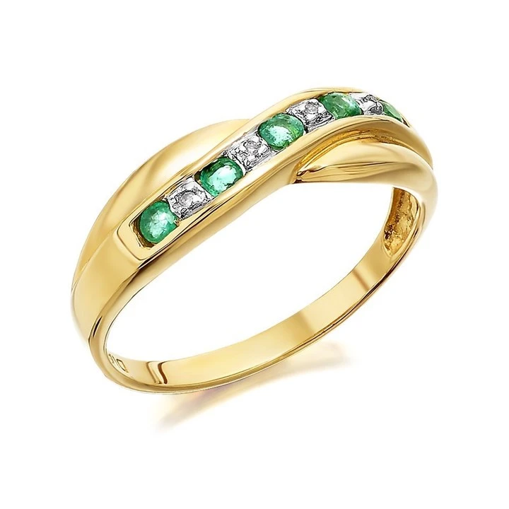 9ct Gold Emerald And Diamond Crossover Half Eternity Ring - D8267-L