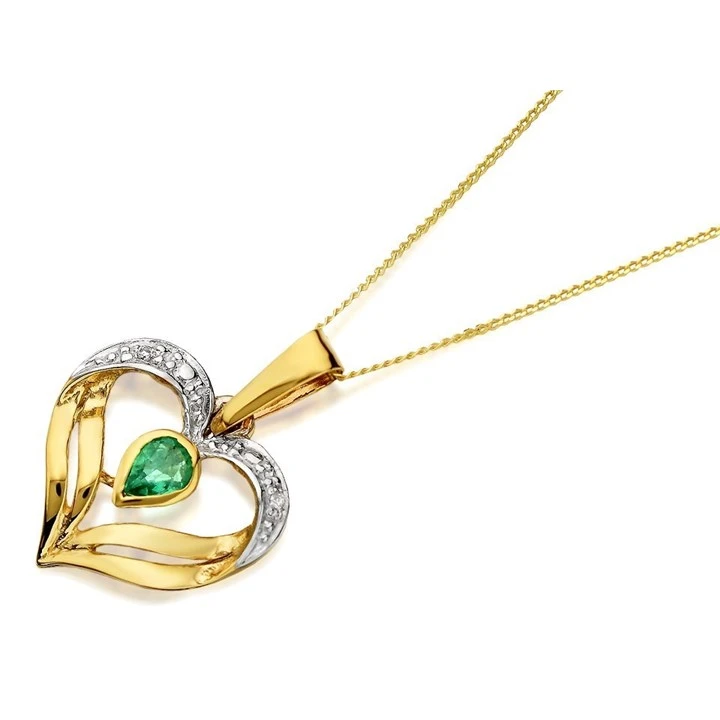 9ct Gold Emerald And Diamond Heart Necklace - R8310