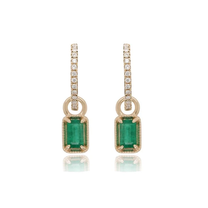 9ct Gold Emerald And Diamond Hoop Drop Earrings - 10pts per pair - D94110
