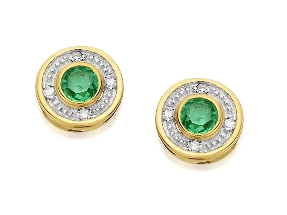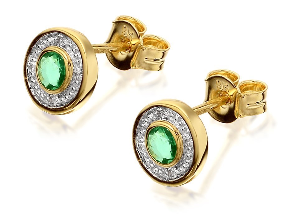 9ct Gold Emerald And Diamond Stud Earrings - D5454