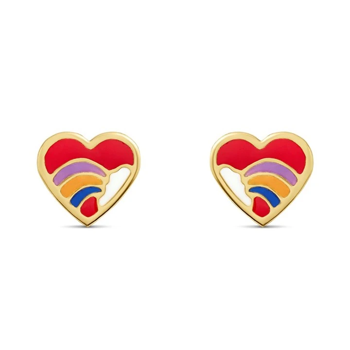 9ct Gold Enamel Rainbow Heart Stud Earrings - G0850