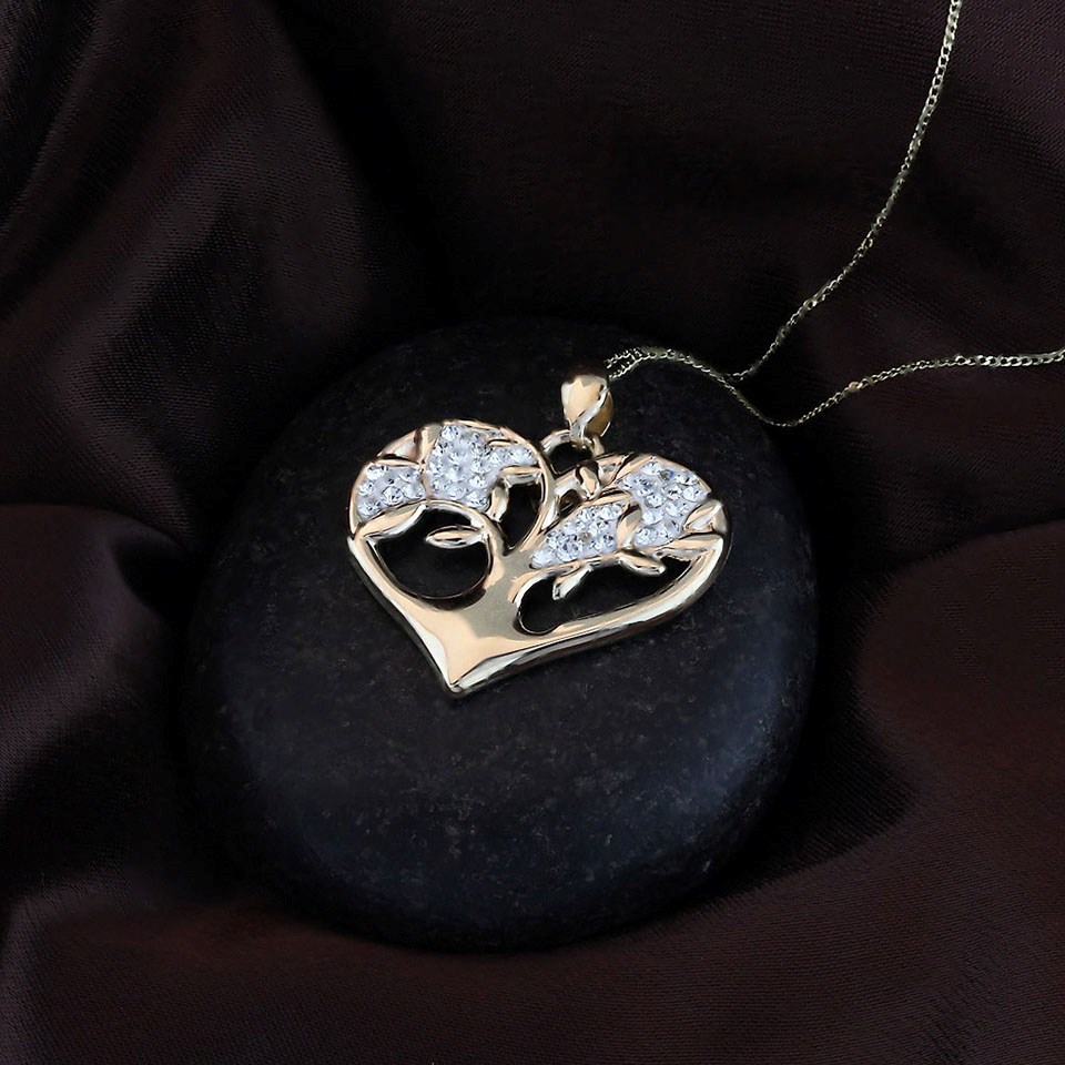 9ct Gold F.Hinds Tree Of Life Crystal Heart Necklace - R8223