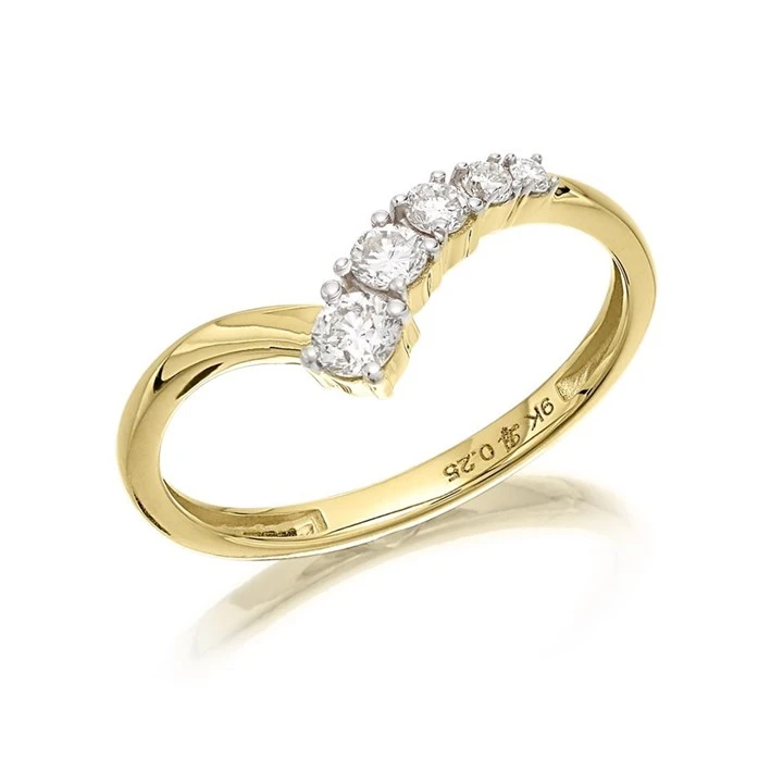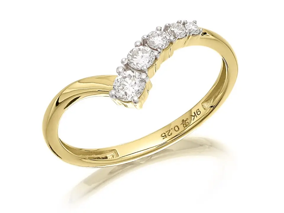 9ct Gold Five Stone Diamond Wishbone Ring - 1/4ct - D80108